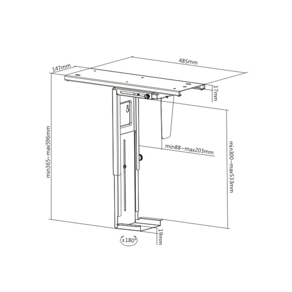 Maximise space and improve accessibility with the Mobel Adjustable Under-Desk CPU Holder. Designed to securely mount your CPU beneath your desk, it frees up valuable floor and foot space while keeping your workstation neat and organised.